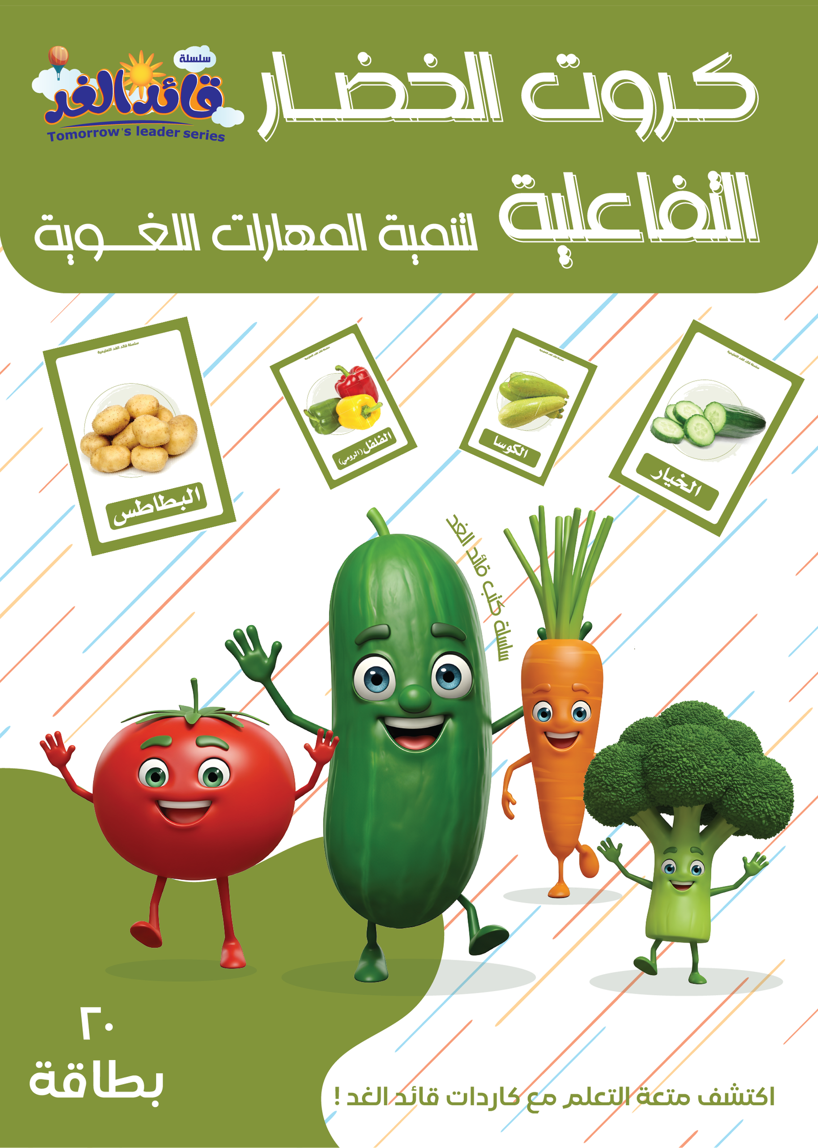 كروت الخضار التفاعلية قائد الغد تقدم تجربة تعليمية مميزة للأطفال تجمع بين الترفيه والتعليم. مصمّمة بعناية لتعزيز فهم الأطفال لأسماء الخضار وفوائدها، هذه الكروت خيار مثالي للأمهات والمعلمين الذين يسعون لجعل عملية التعلم ممتعة وفعّالة.